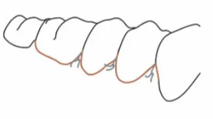 1- A incisão é feita de 0,5 a 1 mm da margem gengival e paralela ao longo eixo dos dentes. Se as bolsas na área vestibular forem menores que 2 mm ou se considerações estéticas forem importantes, é realizada uma incisão intra-sulcular. (fonte: Lindhe, 2010).